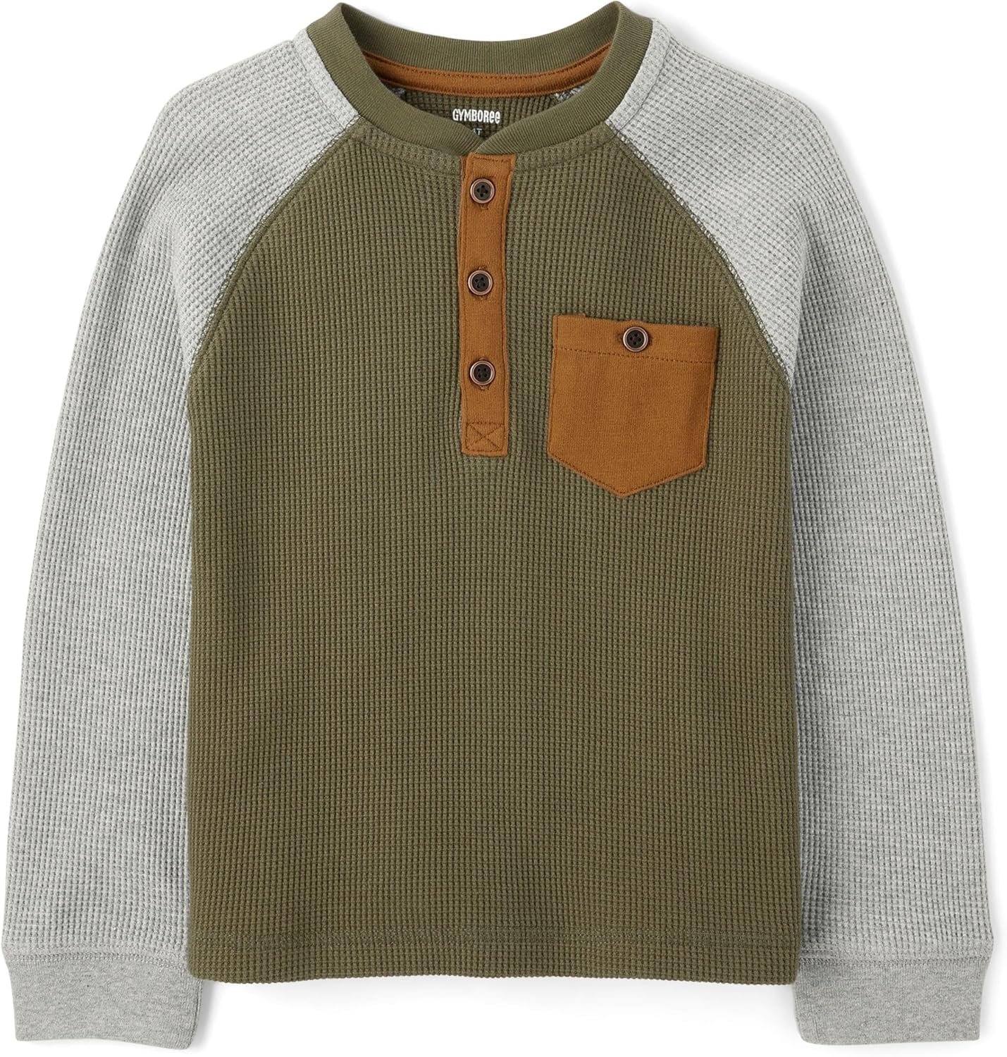 Boys and Toddler Olive Gray Colorblock Long Sleeve Thermal Henley Shirt