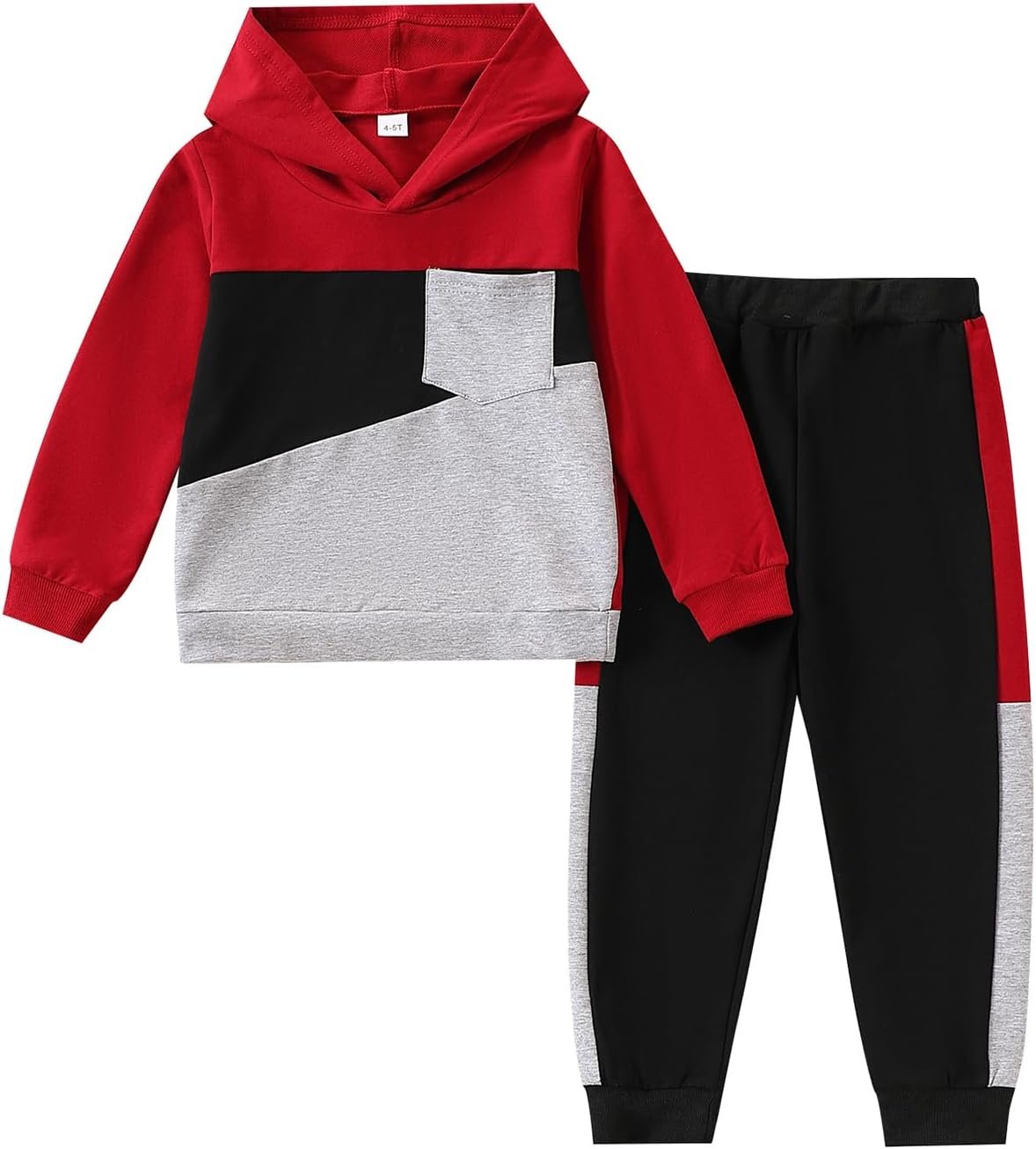 Boys 2 Piece Color Block Sweatsuit Set Long Sleeve Hoodie and Jogger Pants