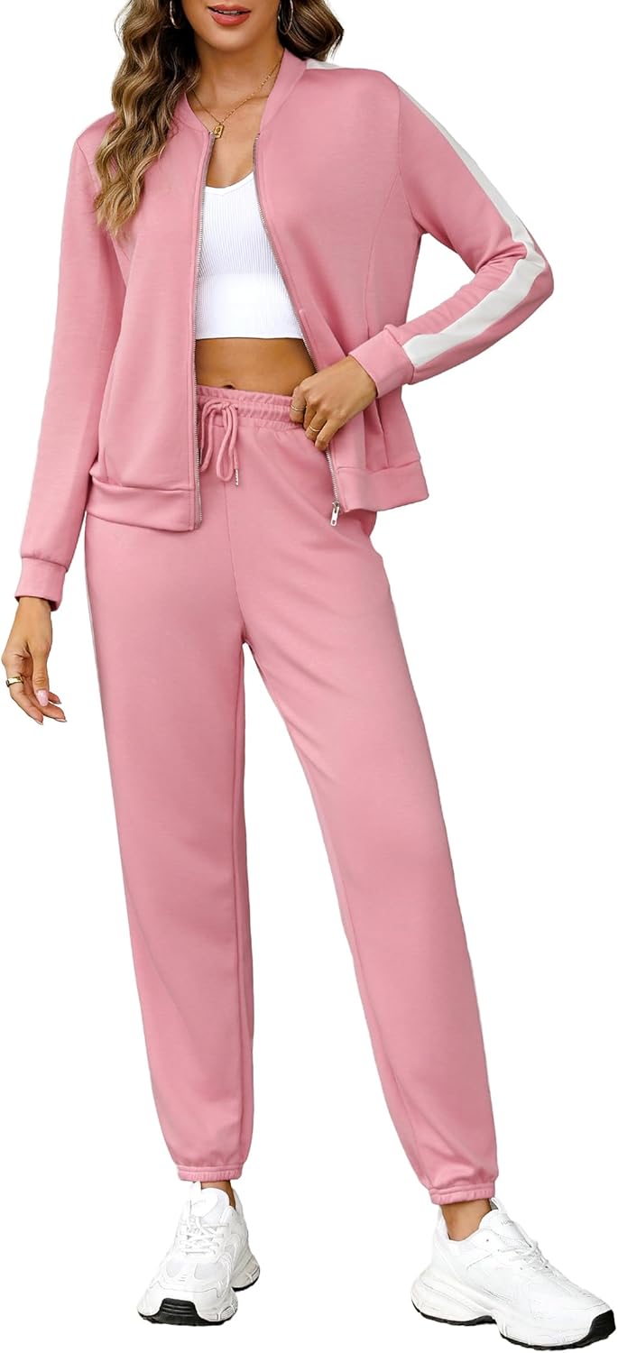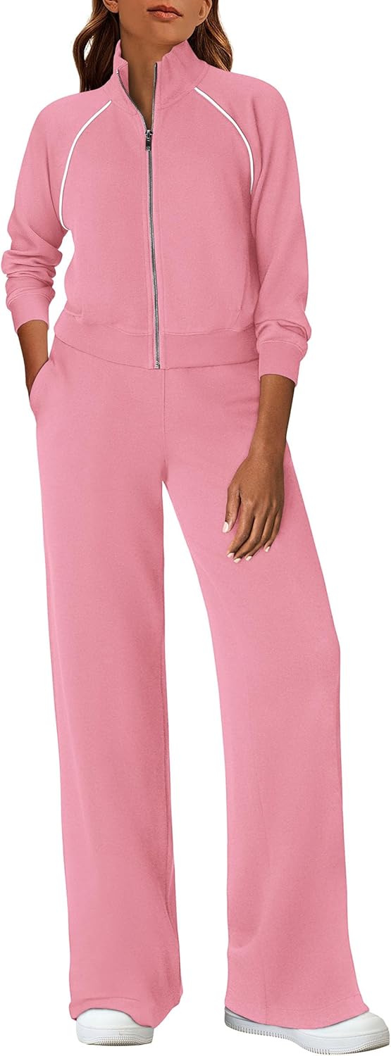 Womens 2 Piece Outfits Sweatsuits 2026 Fall Full Zip Sweatshirts Workout Pants Matching Lounge Sets Tracksuits