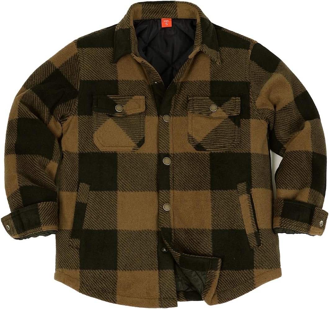 Boys Brown Plaid Quilted Lined Fleece Shacket Jacket