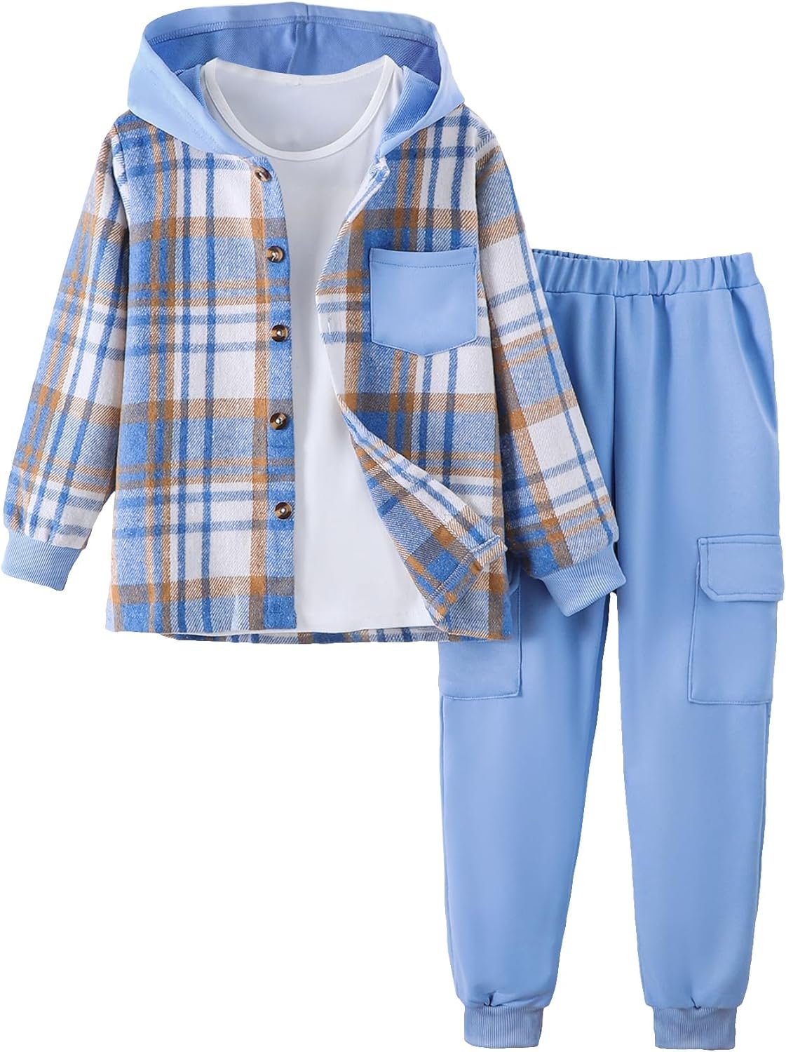 Boys Blue Plaid Hoodie and Sweatpants 2 Piece Sweatsuit Set