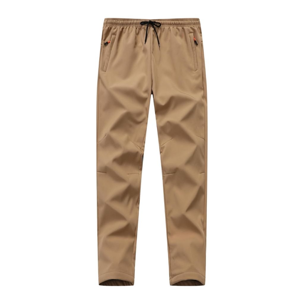 Boys Khaki Fleece Lined Winter Jogger Pants with Zipper Pockets